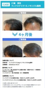 フィナステリドでは「抜け毛が明らかに減った」という声が多く、進行抑制効果を実感している方が多い印象です。フィナステリドとミノキシジルを併用している方からは「単剤より効果を感じる」という報告があります。